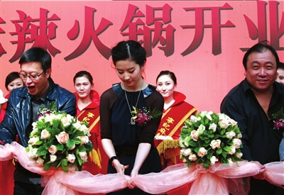 据悉,朝阳门外悠唐广场的这家店也是宁记火锅北京首家分店。据业内人士透露,这家火锅店的投资人除了三大导演外,还有范冰冰、黄晓明和舒淇等几个大明星。这几位因档期错不开,没能前来出席昨天的剪彩仪式,不过他们也送来了对嘉宾的祝福和对自己新店的祝愿。由于是港式火锅店开业,所以开业仪式都依足了传统,广场外众明星嘉宾剪彩后,更有热闹的舞狮表演。许多逛街的白领,突然看到众多明星出现,大家一拥而上,拿起手机一阵狂拍,场面十分混乱。