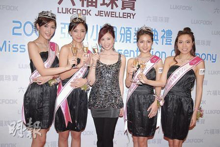 中新网11月6日电 出炉亚姐冠军许莹、亚军王希瑶、季军许嘉慧及友谊小姐张加慧,昨天中午出席后冠及首饰领奖活动。港姐杨宝玲也专程回港为亚姐冠军加冕。
