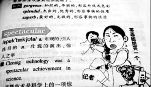 中新网5月17日电 近日,网络红人芙蓉姐姐的漫画形象被收入英语教材,注解“壮观的、引人注目的”英文单字spectacular,引发网友议论纷纷,芙蓉姐姐自己则不满意的说,教科书把她给画丑了!