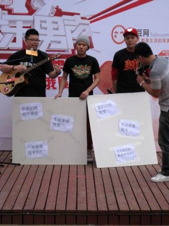 今年快男注定与众不同,不仅“伪娘”选手备受关注,而且连“反伪娘”选手也不失风采,上周快男土豆网分赛区一组特殊选手C-BLOCK组合因在比赛现场打出 “保护纯爷们 消灭伪娘族”的参赛口号,而备受网友关注并被封为“反伪娘斗士”,而有关这场“伪娘”与“反伪娘”的对决,昨日舞美师在博客爆出猛料:“著姐入围前三甲不是问题,首先是因为吸引眼球的需要,这也是湖南卫视选秀常用手段;不仅如此,刘著也已经秘密签约湖南卫视旗下长沙天娱公司”。而针对舞美师的爆料内容,记者也从网上了解到该组合相关资料,首先该C-BLOCK组合来自长沙,在当地一直小有名气,实力不俗,去年多次参加湖南卫视王牌节目《快乐大本营》、《成年礼》、《8090》等节目,而关于“伪娘”刘著网上开始有人爆出其与湖南卫视关系甚密,这些相关信息与舞美师爆料内容十分契合。为进一步求证舞美师的爆料内容,记者向湖南卫视快男导演组一编导求证,他表示:“不要相信舞美师博客内容,纯属造谣,快男比赛保证公平选拔”。 张 漪