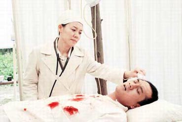 在《风月》摄制组的拍摄现场,记者看到到处都支起了白色的小帐篷,还有红色的十字赫然入目。
