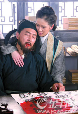 经过两个多月的拍摄,我国首部书法题材的大型电视连续剧《大唐书魂颜真卿》重头戏粉墨登场。唐国强在其中饰演书法巨匠颜真卿,被媒体称为“中国式美女”的年轻女演员赵柯则饰演其结发妻子韦芸。两人表演时情真意切,俨然一对“老夫老妻”。