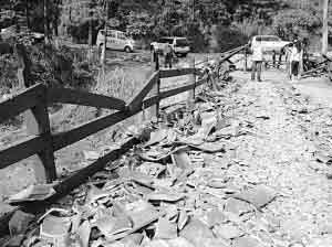 发生意外后的断桥,多名群众演员被重物压伤。