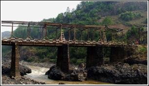 搭建有廊桥的向阳桥在出事前的样子。