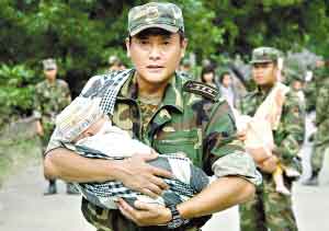 娶了个重庆老婆的香港明星魏骏杰在《震撼世界的七日》中扮演一个参与救灾的解放军上校。