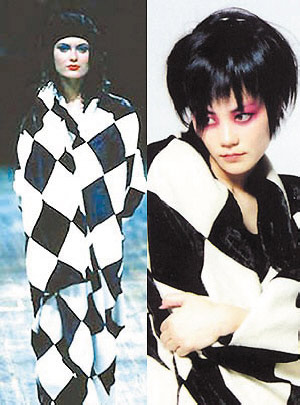 对于新出炉的“红眼妆”,何琳却持保留意见,“我眼部的妆容也是叶锦添老师特意要求的,剧里也只有我有这样妆。我的妆也比其他女孩子浓,都是为了配合元春华丽富贵的头饰和服饰,突出厚重感。在戏中我觉得很美,生活中出现我也会觉得太可怕,太夸张了吧。”一直坚持新“红楼”人物造型要走昆曲风的叶锦添此次有如此创举其实早有迹可循,之前公布的袭人、尤二姐也涂有粉红色的眼影,只是没有像元春那样冲击力强的鲜艳大红突出眼部。有趣的是,元春这款眼妆和王菲推出《寓言》和《王菲》时先锋兼颓废的“红眼妆”一模一样。