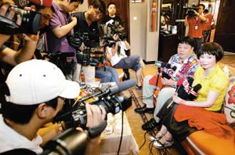蔡明刘金山接受记者采访。 本报记者 刘 杰摄