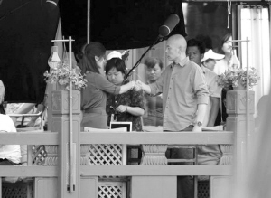 当天的拍摄地点在湖边的一处露天酒吧内进行,葛优与一位年轻漂亮的女孩见面谈心,记者认出那位女孩就是主持人兼演员胡可。葛优当天戴上一副墨镜,胡可则素颜朝天,一副白领气派,俩人刚开始交谈时气氛轻松,似乎彼此对对方印象不错,但几句话下来,风向似乎变了,双方渐生不悦之色,最后葛优好像激动起来,倏地站起身与胡可握手道别。为了捕捉人物表情的细腻变化,这个握手道别的镜头反复拍摄了多遍,葛优的表情显得有点激动和不快,胡可则表情平静。而冯小刚给葛优说戏时并不像其他的导演和演员那样严肃刻板,而是插科打诨似的在说笑间就表明了自己的要求。