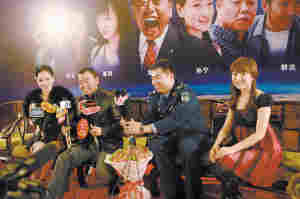 孙宁、潘长江、姜超、潘阳出席新剧关机仪式。