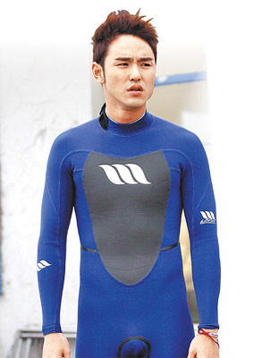 台湾媒体报道,昨小天为《败犬女王》到福隆海滩取景,冒着摄氏10度低温下水,他只穿潜水衣,大喊:“下水戏可不可以先不拍?”可能因为“冷缩”,他身上的每块肉都被绷的一清二楚,全身器官都缩小一号。