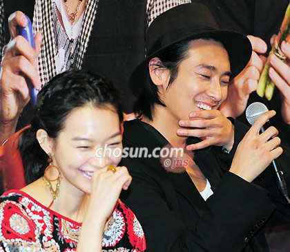 中新网1月20日电 据朝鲜日报日文版报道,1月19日,由申敏儿、朱智勋、金泰宇主演的影片《厨房》试映会布会在首尔举行。出席试映会的该片主演申敏儿和朱智勋开怀大笑。