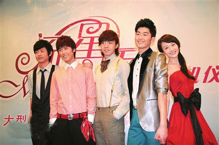 网友抵制、遭遇侵权纠纷、选角有争议……湖南卫视自制励志偶像剧《流星雨》自宣布筹拍以来便因披上了《流星花园》的“马甲”而惹来无数争议。昨日,该剧在厦门亚洲海湾大酒店宣布正式开机,剧中的新版F4及“杉菜”逐一亮相,可惜饱受质疑的新F4并没有抓住机会证明自己,反因为土气的造型由里到外把所有人“雷”了一把狠的,反倒是清新靓丽的新“杉菜”郑爽给人留下了不错的印象。