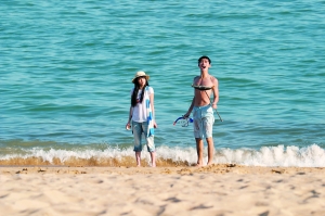 日前,被誉为“山寨版《流星花园》”的《流星雨》在厦门某酒店拍摄了海边度假野炊的群戏。四位男主角张翰、俞灏明、朱梓骁和魏晨与两位女主角郑爽、彭杨一一现身拍摄。不过,从最新曝光的剧照看来,张翰与郑爽(下图)的海滩嬉戏戏看不出有任何的富贵气,反倒更像是小孩子之间的“过家家”游戏。不过,张翰从海水中走出的湿身照,还是能看到他为这个角色锻炼出来的一点点腹肌。