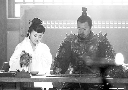 最新历史大戏《孙子大传》日前在河南焦作影视基地开拍,该剧吸引了张丰毅等演员加盟。因在《赤壁》中出演曹操颇受好评的张丰毅扮演男主角“孙子”孙武,景甜扮演孙武夫人漪罗。昨日,《孙子大传》剧组曝光首批剧照,景甜向张丰毅敬茶的画面与《赤壁》中小乔给曹操献茶的镜头非常相似。(彭志强)