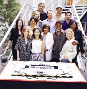 描写医务人员生活的热门美剧《实习医生格蕾》日前完成了第100集的拍摄工作。剧组在洛杉矶的片场举办了一个庆祝派对,并特意准备了一个带有“听诊器”、 “手术刀”等图案的大蛋糕。包括帕特里克·德姆西、桑德拉·欧、凯瑟琳·海格尔(前排右一)等主演均到场留下了“全家福”。