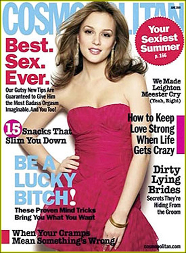 《绯闻女孩》里面的精致美女莉顿·梅斯特登《Cosmopolitan》杂志封面,封面的莉顿·梅斯特身穿枚红色晚礼服,被风吹起的头发,显得整个人精致美艳,风情万种。