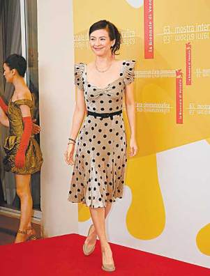 其实论到在记者会的行头,另一位内地四大花旦之一的周迅也绝不示弱,她选了一条价值18000港元的Miu Miu跌膊裙,手戴红色长手袜,她和章子怡在记者会已穿这么隆重,令中外记者们觉得奇怪,因一般演员出席这类影展记者会,衣着比较随便,到走红地毡时才打扮得隆重。