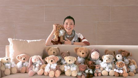 Sammi其后换上红白间条连身裙及白色皮靴,戴上有毛毛圆球点缀的颈巾,尽显青春活泼一面。在温暖的家居场景下,Sammi被廿多只的毛公仔包围,童心未泯的她对公仔爱不释手。