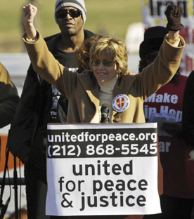 参加反战集会的人,包括政界人士、老兵、军人家属、反战活动者、宗教领袖以及好莱坞影星,其中最受瞩目的当然是简·芳达。她在越战期间,曾在1972前往当时的北越首都河内宣传反战,惹恼许多支持越战的美国人,也影响到她后来的星运。
