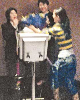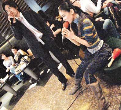 其后杨子于凌晨一时许现身,黄圣依才展露笑颜,并立即坐在他的身边,二人大唱情歌。当杨子上台唱歌时,黄圣依除为对方打拍子外,更急急冲上台向他献花,两人全程也显得极为痴缠!