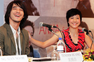 《新明日报》消息,今早,香港甜姐儿林嘉欣、台湾当红新晋偶像黄腾浩为电影《安娜与安娜》出席于史丹福瑞士酒店的记者会。林嘉欣一身无袖娃娃装连衣裙出席记者会,但无袖连衣裙难掩粗手臂,似乎印证了日前“身体走样”、“变壮”等报道。