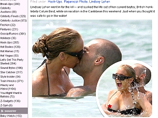 小两口亲昵,贝斯从后面来的一记熊抱,把林赛在水中举起,也扯掉小天后黑色比基尼,导致林赛不慎走光。林赛萝涵近来吸毒发浪负面新闻不断,看起来却似乎没有影响她谈恋爱的心情,仍然幸福的很。