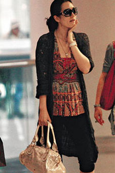 那天,巩俐打扮很师奶,身穿低胸花衫、四角骨裤,穿凉鞋又没有涂甲油,不施脂粉,头发蓬松一看之下,和其他自由行旅客无异,但她手上却拿了价值约港元12,000的Chloe银闪手袋。