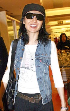 当张曼玉步出入境大厅时,只见她戴着帽子、墨镜,身穿牛仔布小背心、七分灯笼收脚裤,可能是之前穿高跟鞋接连差点跌倒,张曼玉选穿了一双让她健步如飞的平底鞋,若非是身边机场航管人员加保全围起人墙,简直像刚从“香港购物节”来台的游客。