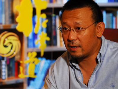 在姜文的办公桌旁,上下两幅挂件中,是他生命中最重要的两个人,一是太太周韵的艺术照,另一则是偶像毛泽东的头像。而在靠墙而立的大书柜里,摆放着各类图书,从《二战回忆录》这样的历史、军事书籍到女作家王安忆、池莉的小说,涉猎广泛而纷繁。姜文正是从书籍中汲取灵感,等待着如《天鹅绒》那样能够“狠狠撞击胸口”那样的作品出现。
