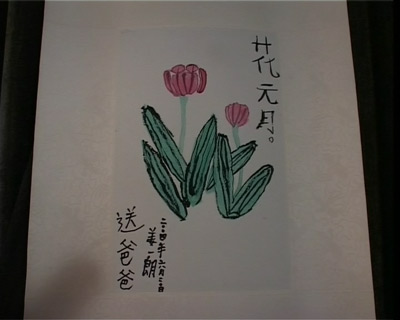走进姜文位于劳动人民文化宫的工作室,满眼都是电影海报,而在姜文独立的工作间里,墙上挂了很多幅女儿姜一朗的美术作品,笔触稚嫩而格调清新,其中一幅名为《花元月》是她送给爸爸的,上面画着一大一小两株红花,被挂在显著的位置。