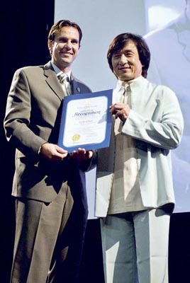 中新网11月2日电 成龙早前到洛杉矶获当地政府颁“中美文化交流荣誉大奖”与“加州第38大会区荣誉大使”等奖状,市长更送了一个皮带扣给他作纪念。成龙一直做有关世界文化与友好交流大使的工作,他称除了中美还有中韩、中日、中俄、中非与中欧等。他身为中国人与亚太区旅游大使,就算没有奖状,他仍会尽力为中国向各国伸出友谊之手。成龙说在他的字典里没有人种之分,大家都是地球人,身处这个地球便应该和睦友爱。