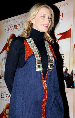 根据《悉尼先驱晨报》报道,38岁的布兰切特前晚亮相新片《伊丽莎白2:黄金时代》的悉尼首映式,在红地毯上被记者问及是否怀孕,她干脆地回答:“是的。”而当记者提起传闻说她这次怀的是个男孩时,布兰切特回应说:“你们知道的比我还多。现在还早呢。预产期在明年4月。”