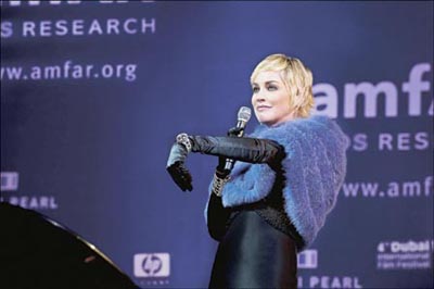 中新网12月21日电 好莱坞巨星莎朗·斯通于上周举行的“第四届迪拜国际电影节”期间,参与“Cinema Against AIDS”慈善晚宴及拍卖活动,为资助艾滋研究的基金会amfAR筹款。