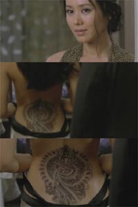 为了这个短暂的摄影画面,孙艺珍可是一动也不动地连续3个小时趴着。据报道,光是准备文身底部就花去了4个小时,然后为了完美地展现千手观音像,整整用了3个小时做细致的工作。