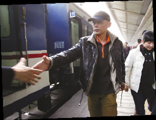 按主办方通知的情况,昨日葛大爷的火车本应该在下午16时到。他坐的是软卧车厢,剧组的制片人王毅去接的他。他出来的时候,头上还戴了一个帽子,墨镜什么的都没有,站台上走了两步,看周围的人还和善,连帽子也摘了下来。这下,很多人认出他来了,开始围着他,他加快了步伐。没人拦着他签名,但很多身边的人一边跟着走一边掏出手机开始拍他,换成别的明星或许早就喊“不准拍”了,但葛大爷没有,任旁边人拍了个够。他没架子的地方很多,主办方派来的车身上打满了花花绿绿的广告,据说价值几万算不上什么高档车,葛大爷头一低就坐进去了,绝尘而去。