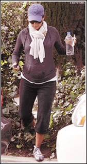 图文:哈莉-贝瑞接受分娩训练 挺大肚外出运动