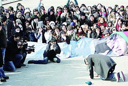 韩国时间14日下午,韩国演员孔侑在韩国某训练营外向歌迷跪谢道别。孔侑将在这个训练营进行为期5周的基础军事训练,之后将正式开始23个月的军人生活。孔侑曾主演《精彩的一天》、《咖啡王子1号店》、《S日记》、《潜伏任务》等剧,被粉丝昵称为“咖啡王子”。 小韩