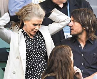 据台湾联合报报道,澳洲两个地方昨天都高唱妈妈乐,怀孕中的妮可和老公凯斯去看澳洲网球公开赛,妮可身穿圆点碎花洋装,但小腹明显微隆,和凯斯不时交头接耳,笑得灿烂甜蜜。