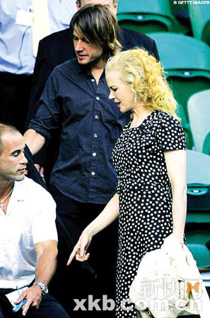 此前妮可·基德曼曾否认怀孕一事。前不久,她终于公开承认自己怀孕的事,但她看起来还是跟往常一样苗条。妮可夫妇到达比赛现场的时候,澳大利亚选手Lleyton Hewitt和塞尔维亚选手NovakDjokovic正在激烈角逐。在现场,穿着黑色紧身裙的妮可显得十分温顺可人。从身型来看,丝毫看不出她“有”了。(吴小燕)