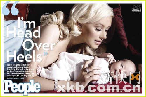 组图:克里斯蒂娜产后首亮相 抱未满月儿子拍封面