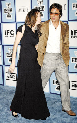 旨在奖励拍摄成本低于2000万美元电影的美国电影独立奖昨日颁奖,早前被证实有孕在身的安吉丽娜·茱莉与亲密爱人皮拉德·皮特盛装出席,茱莉身穿一身束身黑色礼服,凸起的小腹显露无遗,两人的幸福溢于言表。据美国《人物》杂志报道,有消息人士透露两人对于未来新成员的加入感到十分兴奋。