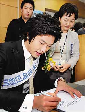3月3日是韩国第42届“纳税人之日”,国税厅将玄彬(左图)、河智苑(右图)和韩佳人等28名艺人委任为“一日名誉信访服务室长”,将他们派到各地的税务署宣传税务相关法律和知识,为市民服务。此外,《巴黎恋人》女星金正恩和电影《王的男人》男星甘宇成齐齐获颁国务总理奖,以表扬他们是诚实的模范纳税人。