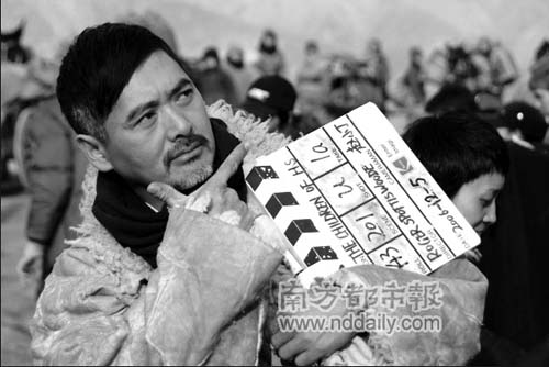 周润发在片场搞笑。