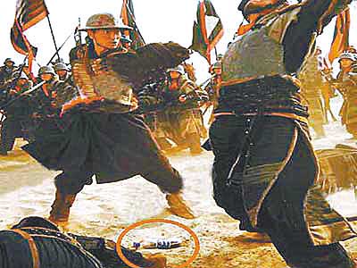 《见龙卸甲》"穿帮"剧照 赵子龙脚踏可乐瓶