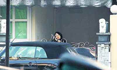 张柏芝妈妈在打电话。