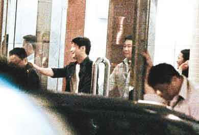 黎明与好友庆祝至凌晨3时离开,还于门口送客。香港东方日报图。