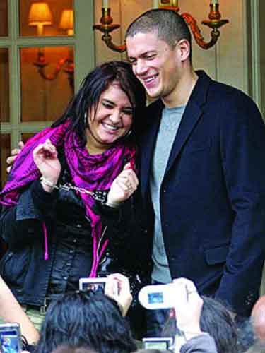 上周日,米帅来到巴黎,引得法国女粉丝闻风而动。她们在米帅下榻的饭店将他堵住,要签名要合照,而且显然,有备而来的不少,照片上这位就是自戴手铐。