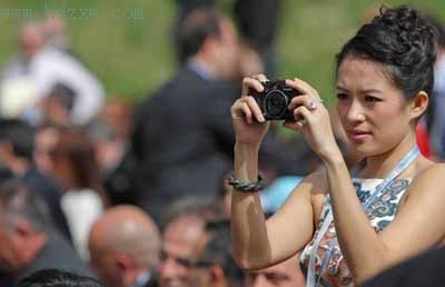 虽为明星,不忘记者的职责。章子怡不停拍照