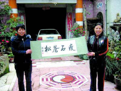 大堂姑徐素芬(左)与小堂姑徐素欣展示徐静蕾书法作品