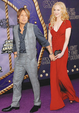 前天妮可·基德曼与凯斯·厄本连袂走上乡村音乐电视奖颁奖典礼红地毯,两人手牵着手显得很亲热,凯斯·厄本还不时摸摸妮可·基德曼隆起的腹部,脸上洋溢准爸爸的喜悦。